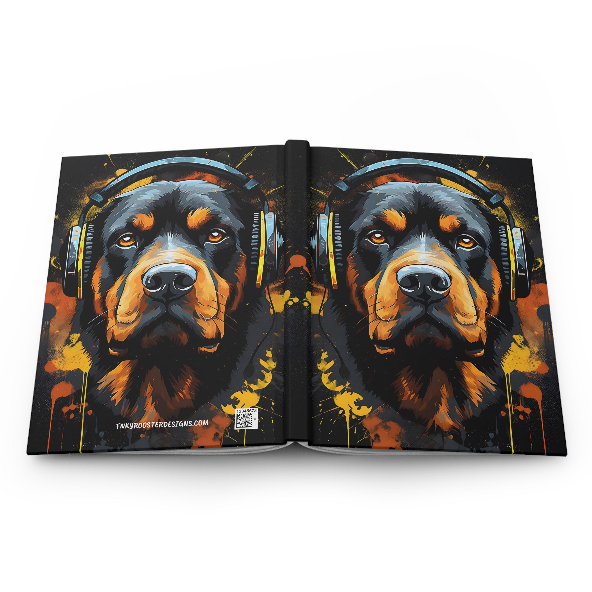 *Embrace the bold spirit of the Rottweiler with the "Rottweiler Rumble Street Art Journal" by FNKY ROOSTER DESIGNS. This striking hardcover journal embodies the power and loyalty of the Rottweiler through intense and vibrant street art. It's not just a writing tool; it's a testament to urban culture and fearless creativity. Ideal for the adventurous writer, artist, or Rottweiler enthusiast who seeks a journal that stands out from the crowd.*
