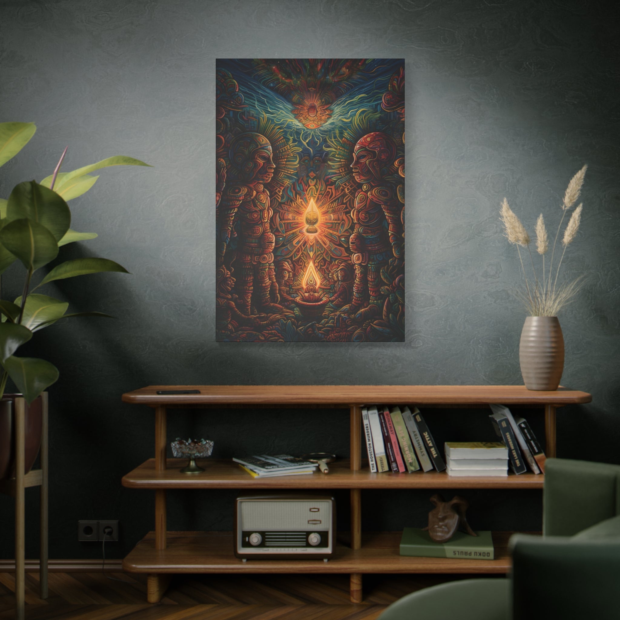 The "Teachers of the Light" canvas print was born from a transformative journey during an Ayahuasca ceremony . Our in-house artist, captivated by the mystical allure of Ayahuasca, embarked on a spiritual quest to explore the boundaries of consciousness and the mysteries of the universe.